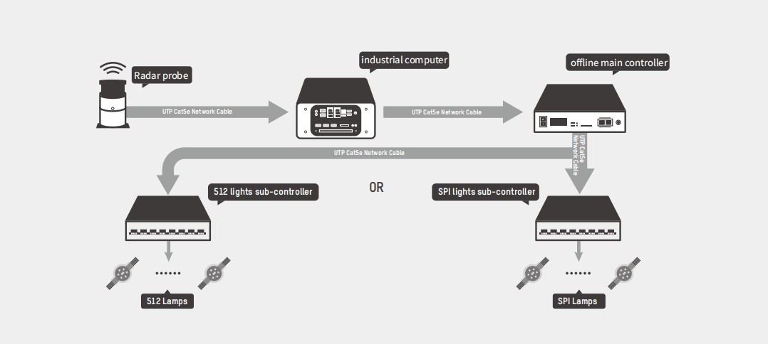 Description:Somatosensory Interaction can be not only used for ground screen,but also facade screen. When people move in the area of sensor, specific animation will be shown on the screen. The animation can be customized. The interaction can be participated by many people, and they will have good interactive experience.