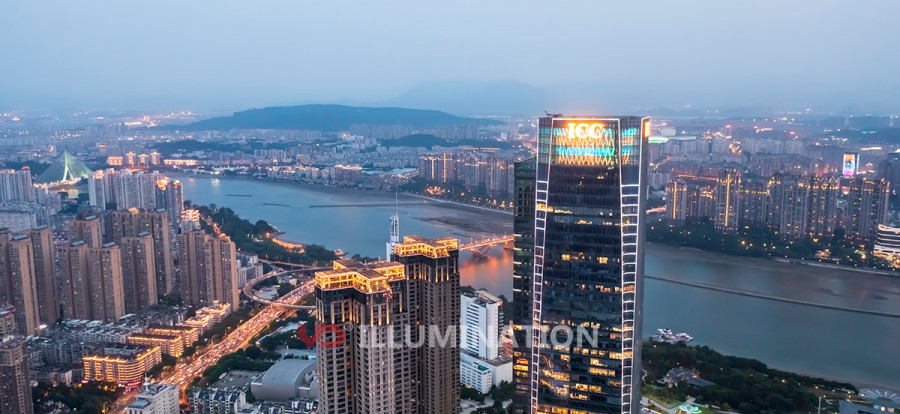 Optimus Prime, the tallest building in Min River, was built by morning office building expert Shenglong Group, designed by SOM design, and provided outdoor lighting support.